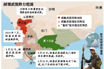 不过,也门国内持续数年的和谈没能扭转局势恶化。什叶派的胡塞武装去年9月控制首都萨那,后来软禁总统哈迪。在哈迪逃脱后,近日又发动攻势,向哈迪行使职权的第二大城市亚丁挺进。