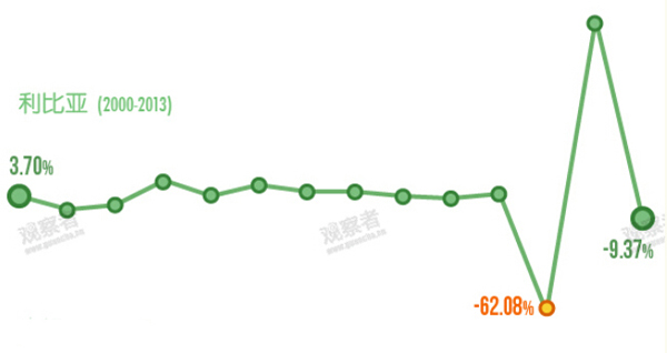 惊心怵目的-62.08%,把利比亚的赤贫状态揭示得淋漓尽致。几乎无法估量这个国家倒退了多少年,政权仍在各类集团手中更换,死亡人数仍在增加。