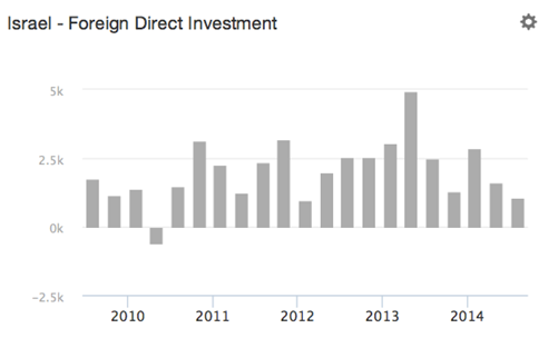 图三:以色列近年来外商直接投资规模变化(单位:百万美元)