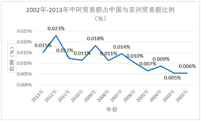 表3. 2002年-2013年中阿贸易额占中国与亚洲贸易额比例(%)