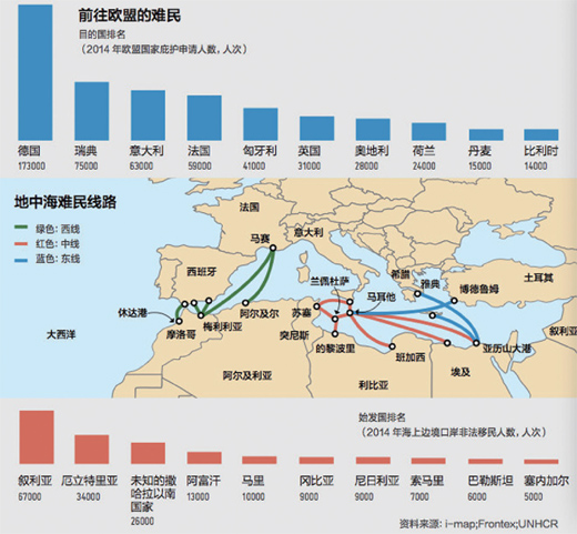 东西长约4000千米,南北宽约1800千米的地中海,承载着数十万难民的梦想,在出发前,是“新生之路”的起点,在偷渡船倾覆的那一霎那,是“死亡航线”的终点。