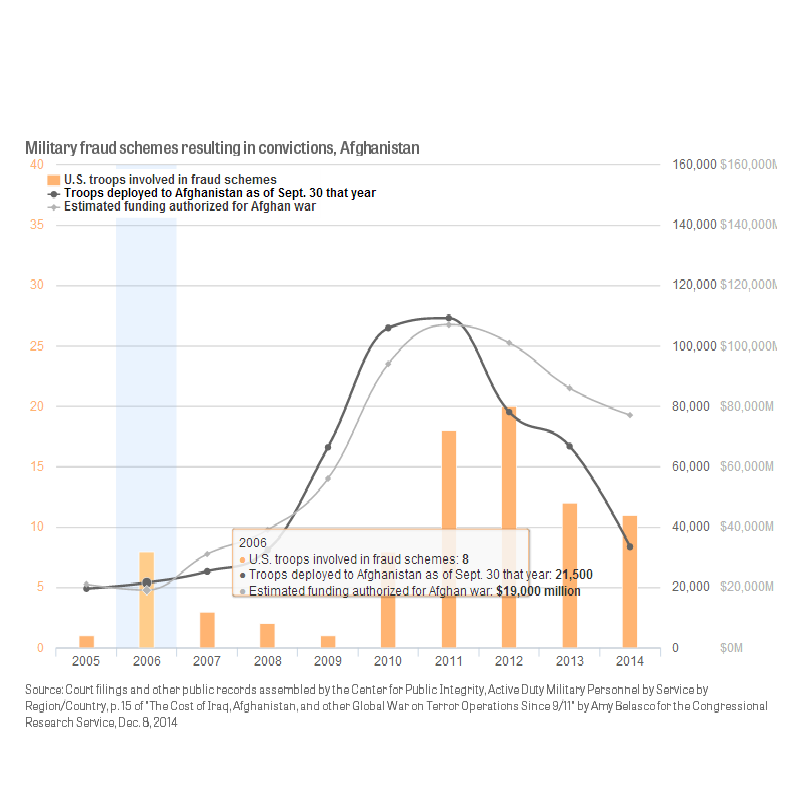 美国公共廉政中心(The Center for Public Integrity)记者茱莉亚·哈特(Julia Harte)近日撰文指出,自2005年以来,美国有115名在伊拉克和阿富汗服役的军人被判犯下偷窃、欺诈合同和收受贿赂的罪行,涉案金额高达五千万美金。