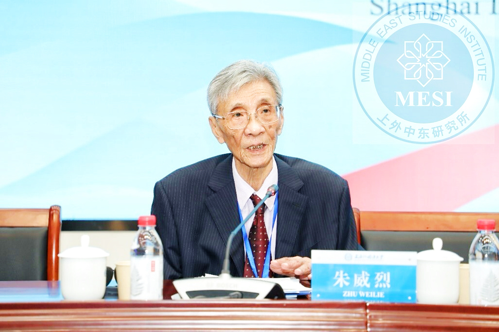 特邀报告由上海外国语大学中东研究所名誉所长朱威烈教授主持。朱威烈表示,在当前变乱交织的世界形势下,需要认清世界发展大势,把握时代潮流。为此,中国外交积极谋划布局,进一步提出“全球治理倡议”,使中国提供的国际公共产品更加完善系统,展现出中国引领国际秩序向更加公正、平等、合理发展的国际影响力、感召力和塑造力。