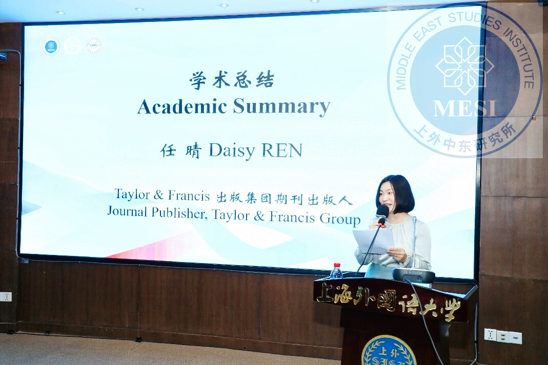 Taylor & Francis 出版集团期刊出版人任晴结合国际期刊的发表与传播对论坛作了高度评价。上海外国语大学中东研究所副所长丁隆教授对论坛作了总结,认为本届论坛体现出令人鼓舞的新趋势,如对发展议题的关注使得中东研究超越了传统安全议题,尤其是青年学者带来的研究视角和方法论创新为中东研究注入了新动能。