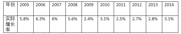 表一:约旦GDP增长率(05-13年)(数据来源:约旦统计局网站)