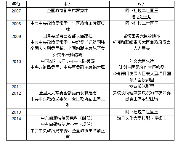 表二:中国-约旦近些年双边高访一览表(来源:中华人民共和国驻约旦哈西姆王国大使馆)