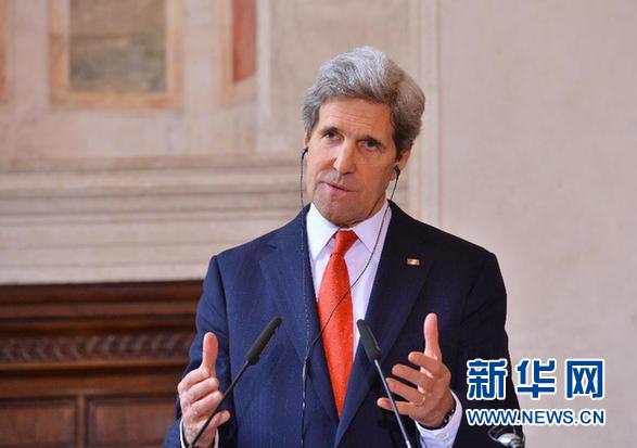 2月28日,在意大利首都罗马,美国国务卿克里出席“叙利亚之友”会议后的新闻发布会。当日,美国国务卿克里在罗马参加“叙利亚之友”会议,会后宣布美国将向叙利亚反对派提供6000万美元援助。(新华社记者 许逆之 摄)