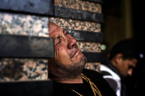 2013年2月4日,埃及开罗,一名男子参加遭杀害的抗议者葬礼,他痛哭流涕