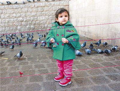 岁末,叙利亚首都大马士革的小女孩在倭玛亚清真寺旁喂食象征和平的鸽子,祈祷2013年安宁。(本报记者 焦 翔摄)