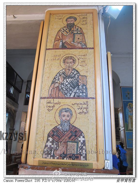 插图为“花甲背包客”在中东游历时拍摄的照片,此为约旦马德巴小城一个东正教教堂内饰