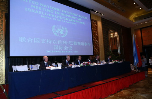 潘基文对中国进行访问期间出席“联合国支持以色列-巴勒斯坦和平国际会议”。