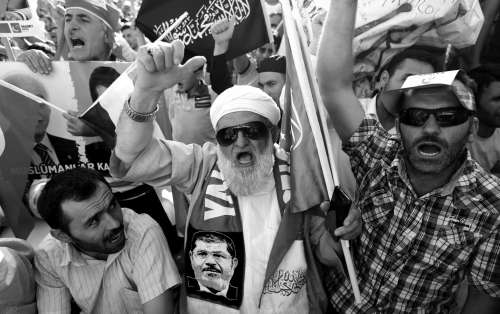 当地时间7月14日,土耳其民众在伊斯坦布尔集会声援埃及被罢黜总统穆尔西。图片来源 CFP