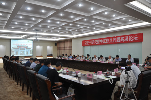 2014年6月21日上午,由中国中东学会、河南大学历史文化学院、河南大学犹太研究所、河南大学国际问题研究所联合主办的“以色列研究暨中东热点问题高层论坛”在河南大学金明图书馆三楼贵宾室举行。外交部前副部长、中国中东学会名誉会长杨福昌先生、外交部前部长助理王昌义先生、中国前驻埃及大使安惠侯先生和中东学会会长、副会长、常务理事及国内部分高校和科研院所研究人员与会。