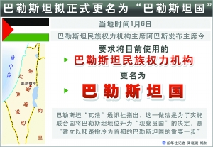 巴勒斯坦民族权力机构主席阿巴斯6日发布主席令,要求将目前使用的“巴勒斯坦民族权力机构”更名为“巴勒斯坦国”。