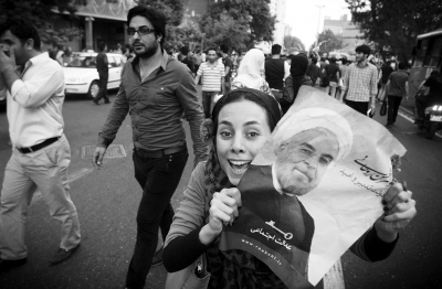 15日,在德黑兰,鲁哈尼的支持者庆祝其当选伊朗总统。新华社发