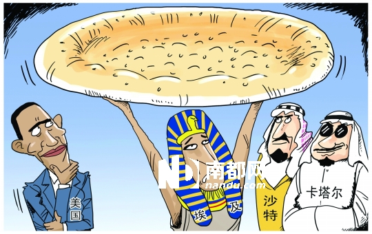 “阿拉伯大饼”是埃及百姓最重要的主食,在粮食产量不足、人口急剧膨胀的背景下,大饼涉及政权稳定,重要性毋庸讳言。在目前局面下,埃及在经济上必须依赖外援,而几大“金主”——美国、卡塔尔、沙特及其盟国——则各有目的且相互博弈。