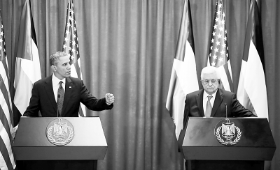 美国总统奥巴马会见阿巴斯 3月21日,美国总统奥巴马(左)与巴勒斯坦民族权力机构主席阿巴斯在约旦河西岸城市拉姆安拉会面后举行新闻发布会。 新华社发