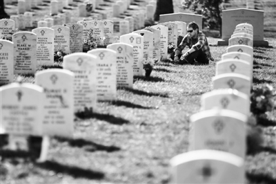 3月19日,伊战10周年纪念日前一天,伊战美国老兵来到阿灵顿国家公墓祭拜遇难的战友。