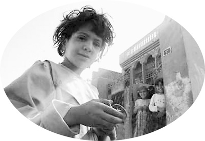 2003年5月28日,在巴格达市贫民区,一名蓬头垢面的伊拉克女孩在家门前玩耍。(新华社记者 韩传号摄)