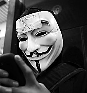 图为蒙面“匿名者”和他们的网上图标