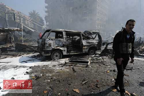 图为近日大马士革市内一处爆炸现场。(本报记者张迺杰/摄)