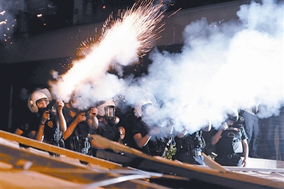当地时间6月4日,土耳其伊斯坦布尔,防暴警察朝示威者发射催泪弹。