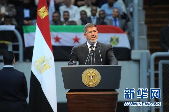 埃及总统穆尔西15日晚宣布断绝同阿萨德政府的一切外交关系,召回埃及驻叙利亚大使,关闭叙利亚驻埃及使馆。 新华社发(埃及总统府供图)