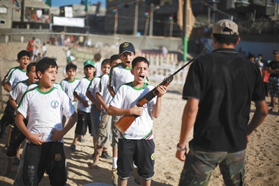 6月10日,加沙,巴勒斯坦男孩参加哈马斯组织的夏令营,接受军事和心理训练。巴勒斯坦问题已经成为中东问题的核心。