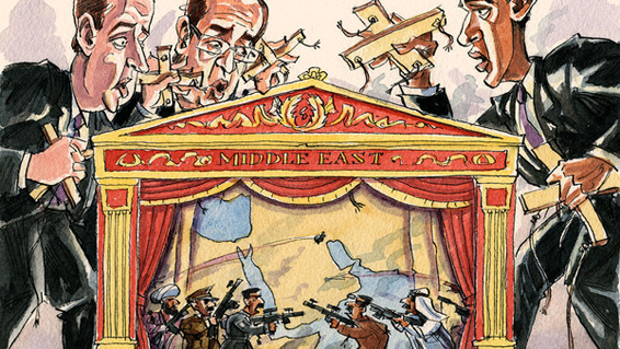 当前中东越来越脆弱的国境线,在很大程度上是按照1916年签订的《赛克斯-皮科协定》(Sykes-Picot Agreement),在英国和法国绘制的地图上划定的几条线。英法作为外来强权主导这一地区的时代,在1956年苏伊士危机(Suez crisis)期间彻底告终,当时美国阻止了英法两国对埃及的干涉。冷战期间,美国和苏联是这里最大的操盘手。1991年苏联解体后,美国成为在中东发挥影响力的唯一超级大国:在1991年组织联军打败萨达姆•侯赛因(Saddam Hussein),保护海湾地区的石油出口,遏制伊朗,并试图在以色列和阿拉伯国家之间斡旋,推动达成和平的和解方案。