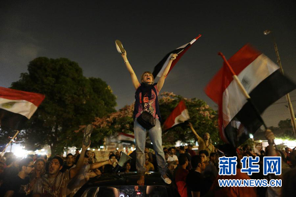 资料图:7月2日,埃及总统穆尔西的反对者在开罗总统府前举行集会。新华社发(维萨姆·纳赛尔摄)