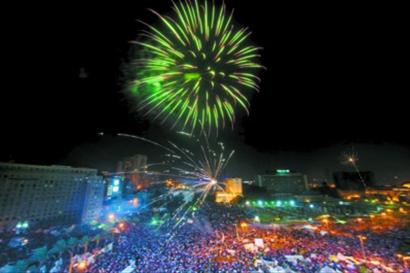 3日晚,在开罗解放广场,民众点燃焰火庆祝。当晚,埃及军方宣布提前举行总统选举。 新华社发