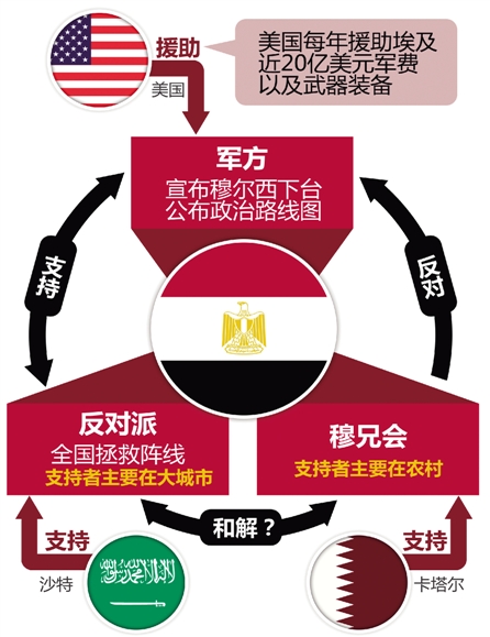 “这看起来就像是个历史宿命,”金灿荣说,“在军方控制之后,埃及当然还是要选举,但伊斯兰势力和世俗自由派的根本矛盾并没有消除,世俗派内部也可能产生矛盾和分化,新选举出来的总统想要稳坐其位同样不容易。”