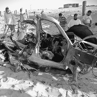 7月24日,埃及西奈半岛阿里什一警察训练基地附近发生汽车炸弹爆炸事件,导致3人死亡。图为人们聚集在事件现场查看。新华社发