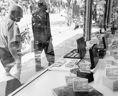 外界针对伊朗的经济制裁导致该国外汇短缺。图为一名德黑兰市民向街边的外汇兑换处张望。人民视觉