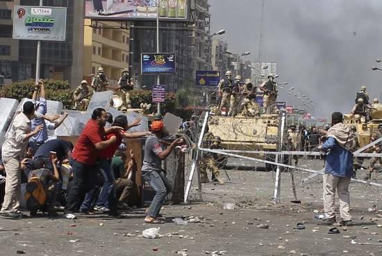 埃及军方终于出手开始对前总统穆尔西的支持者进行清场。开罗时间14日6时许,埃及警方开始对聚集在开罗阿达维耶清真寺外广场和复兴广场的穆尔西支持者实施清场行动。警方说目前已控制了复兴广场上的示威营地。
