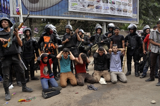 8月14日,埃及安全部队在开罗纳达广场逮捕穆尔西支持者。埃及卫生部表示,在昨日的清场行动引发的冲突中,死亡人数已达到149人。 新华社 图