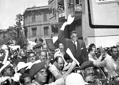 1956年,取缔穆兄会并且收回苏伊士运河的纳赛尔达到个人政治生涯巅峰。