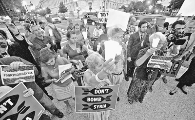 9月9日,在美国华盛顿,民众集会反对军事干预叙利亚。