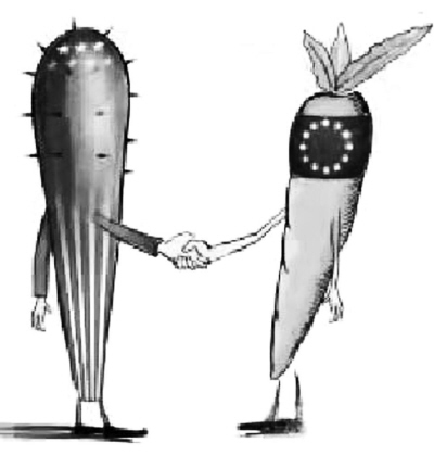 “大棒”与“胡萝卜”互相妥协 漫画:赵斌 来源:新京报