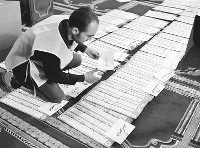 阿富汗首都喀布尔市的选举工作人员正在统计大选票数。(人民视觉)