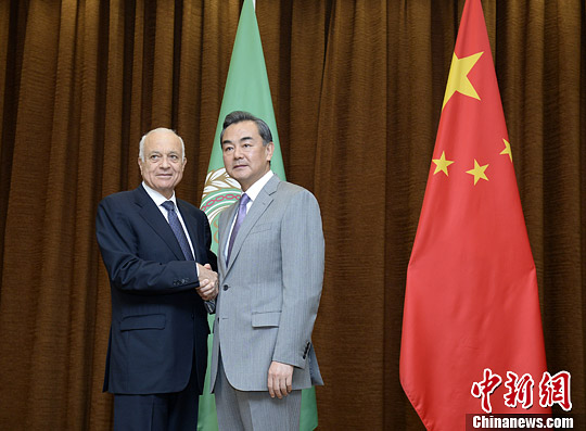 6月4日,中国外交部部长王毅(右)在北京与来访的阿拉伯国家联盟秘书长阿拉比举行会谈。阿拉比将出席中阿合作论坛第六届部长级会议。中新社发 侯宇 摄
