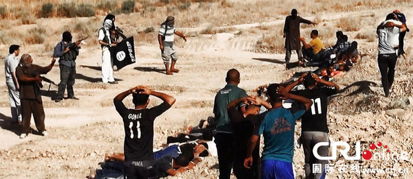 当地时间2014年6月14日,伊拉克萨拉赫丁,伊拉克极端武装“伊拉克和黎凡特伊斯兰国”武装人员处决大量俘虏的伊拉克安全部队士兵。