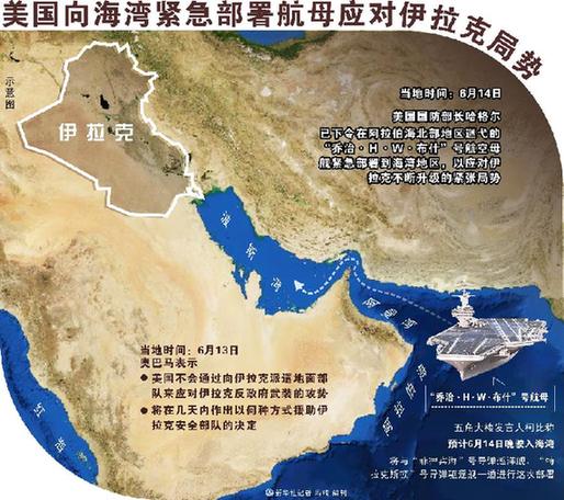 图表:美国向海湾紧急部署航母应对伊拉克局势 新华社记者 冯琦 编制