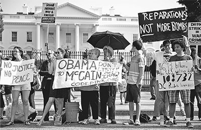 6月16日,美国民众在白宫外集会,反对美国政府干预伊拉克局势。(人民视觉)