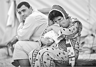 6月12日,在伊拉克库尔德自治区艾斯基凯莱克,一处安置尼尼微省逃离居民的难民营内,一名伊拉克妇女怀抱自己的孩子。(新华社发)