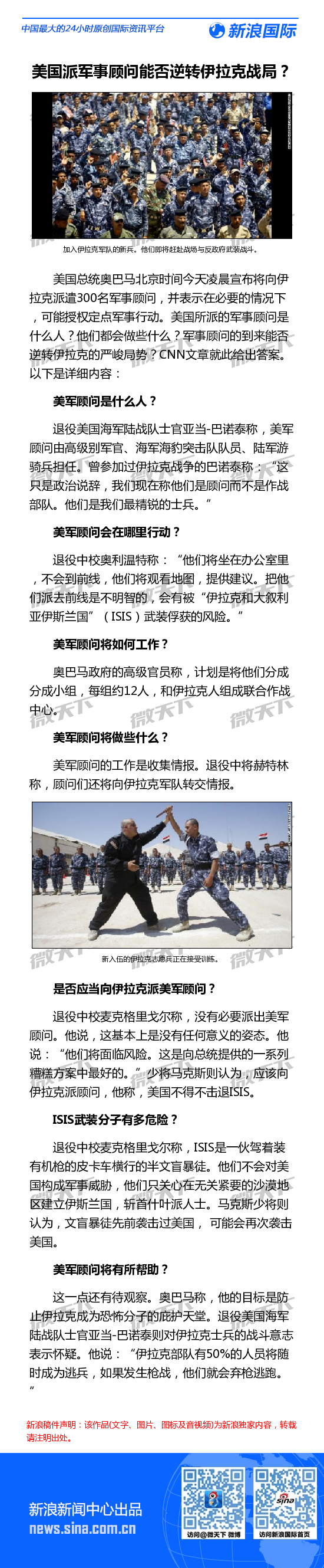 CNN:美国派军事顾问能否逆转伊拉克乱局?