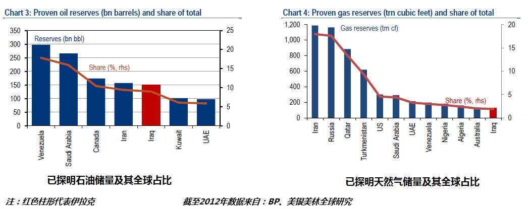 伊拉克石油已探明储量1500亿桶,全球排名第五,而且目前开采比例很少。低开采成本和靠近欧亚市场的地理位置优势都会让伊拉克产油获利更多。