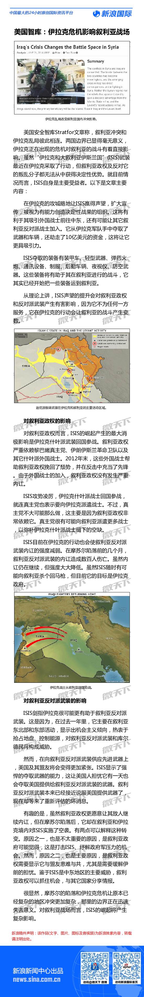 新浪网:美国智库称伊拉克危机影响叙利亚战场形势