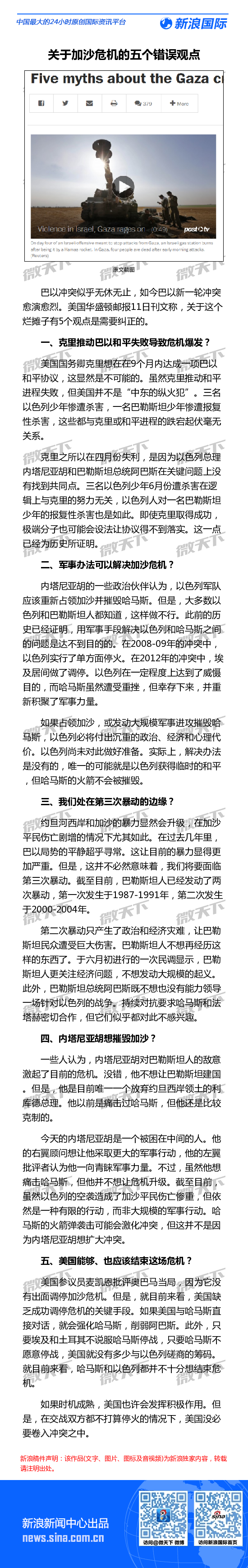 华盛顿邮报:关于加沙危机的五个错误观点