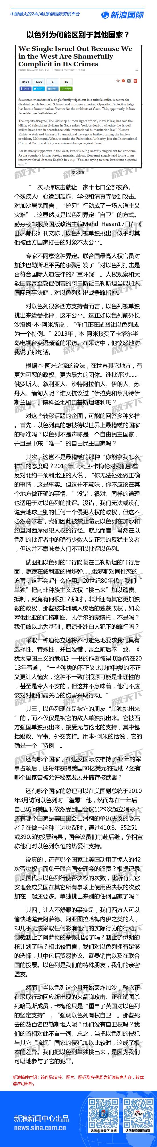 世界邮报:以色列的“自卫”为何不同于其他国家?